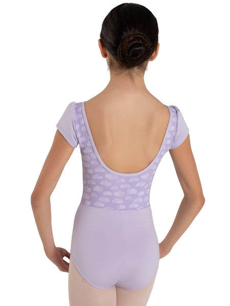 Step into the spotlight with the Horizon Leotard! Made of a comfortable polyester and spandex blend that provides flexibility and ease of movement during practice or performances. This leotard's cap sleeve design is a total head-turner, featuring elegant gathers at the neckline and sleeve. The scoop neckline and scoop back create a classic look that's flattering on all little dancers. Featuring a mesh overlay back panel that adds a unique and eye-catching element to the design. All colors are fully front-lined, providing extra comfort and coverage during wear, while the dyed-to-match mesh makes sure you look polished from head to toe. Pair with the Sky Skirt or Sunburst Short to complete the look. Available in child sizes only.